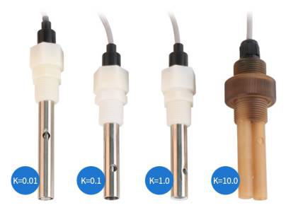 (2)多电极式电导电极,一般在支持体上有几个环状的电极,通过环状电极的串联和并联的不同组合,可以制成不同常数的电导电极。环状电极的材料可以是石墨、不锈钢、钛合金和铂金。电导电极还有四电极类型和电磁式类型。