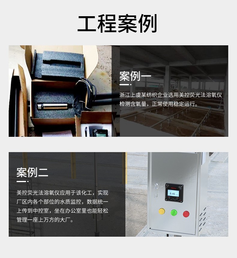 该产品普遍应用于污水处理厂调节池、生化池、出水等各工艺过程 的 DO 在线监测;自来水厂、地表水、各种工业生产过程用水、水产养 殖等行业的 DO 在线监测。