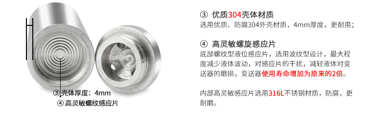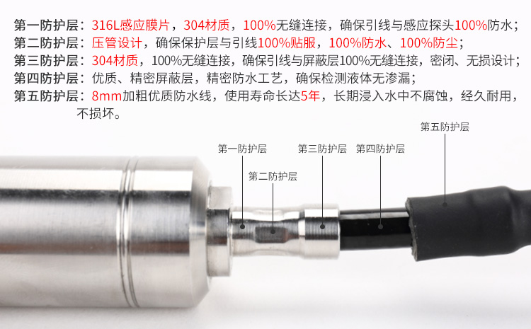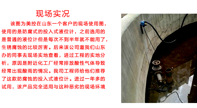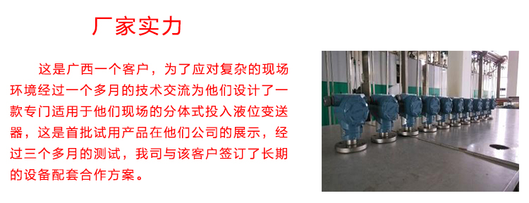MIK-P260型硅压阻式液位压力变送器将充油芯体封装在不锈钢壳体内,前端防护帽起保护传感器膜片的作用,也能使液体流畅地接触到膜片,防水导线与外壳密封连接,通气管在电缆内与外界相连,内部结构防结露设计。MIK-P260 型内置微型信号处理电路,可进行远程传输。具有良好的稳定性和可靠性。 MIK-P260型硅压阻式液位压力变送器广泛应用于环保、水利、变频供水、工业过程控制、化工等领域的液位测量控制。