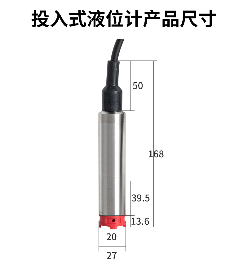 投入式液位变送器由高性能扩散硅压阻式压力传感器作为测量元件,将与液位深度成正比的液体静压压力准确测量出来,并经过信号调理电路转换成标准(电流或 电压)信号输出,建立起输出信号与液体深度的线性对应关系,实现对液体深度的测量。