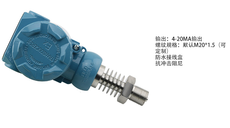 MIK-P300G耐高温压力变送器压力敏感核心采用了高性能的硅压阻式压力充油芯体,内部的专用集成电路将传感器毫伏信号转换成标准电压、电流或频率信号,可以直接与计算机接口卡、控制仪表、智能仪表或PLC等方便相连。运距离传输可以采用电流输出方式。具有体积小、重量轻、全不锈钢密封结构,可在腐蚀性环境中工作。该产品安装方便简洁,具有非常好的抗振和抗冲击性能,广泛应用于过程控制、航空、航天、汽车、医疗设备、 HVAC等领域。